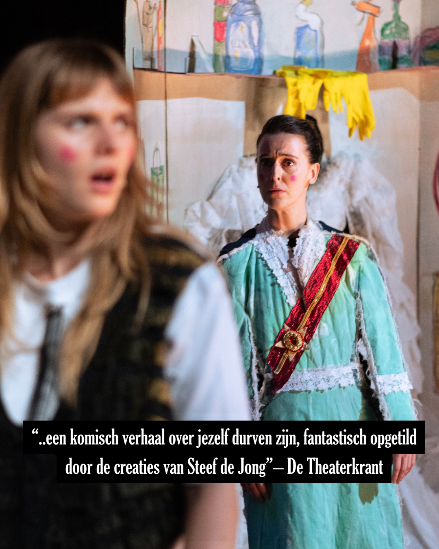 “..een komisch verhaal over jezelf durven zijn, fantastisch opgetild door de creaties van Steef de Jong”